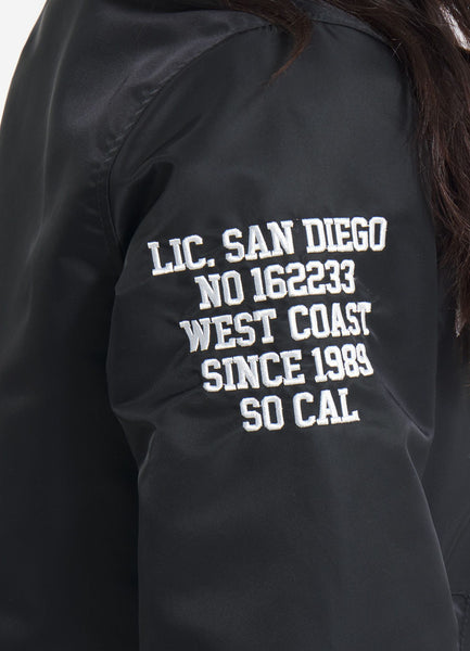 - embroidered lettering on the right sleeve