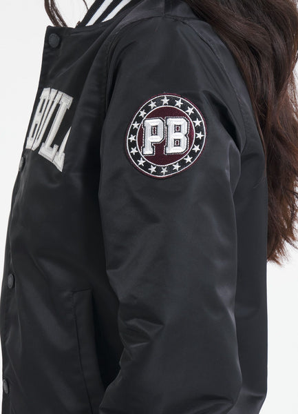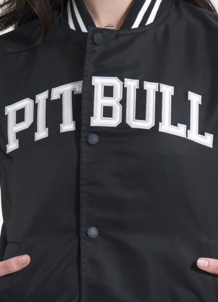 - large embroidered PIT BULL inscription on the front