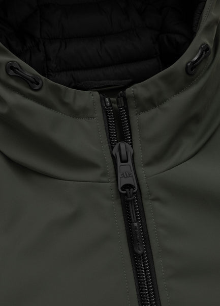 - insulated hood adjustable with elastic drawcord and stoppers